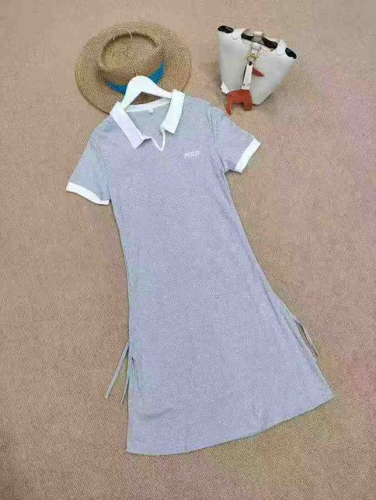 [月亮]:美式复古学院风两侧抽绳设计连衣裙