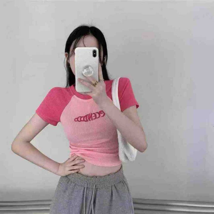 [月亮]:纯欲风美式辣妹刺绣短袖T恤