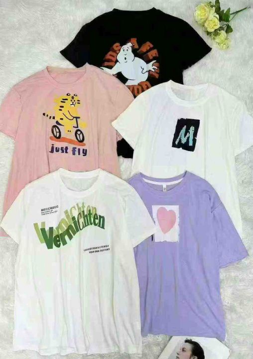 男女同款短袖宽松潮流时尚休闲印花上衣短袖T恤,纯棉面料柔软舒适透气[强],弹力大,图案花色多[色],部分有后领包边设计不易变形,好货靓货,100件起分货➕5.8。 货号:24862
