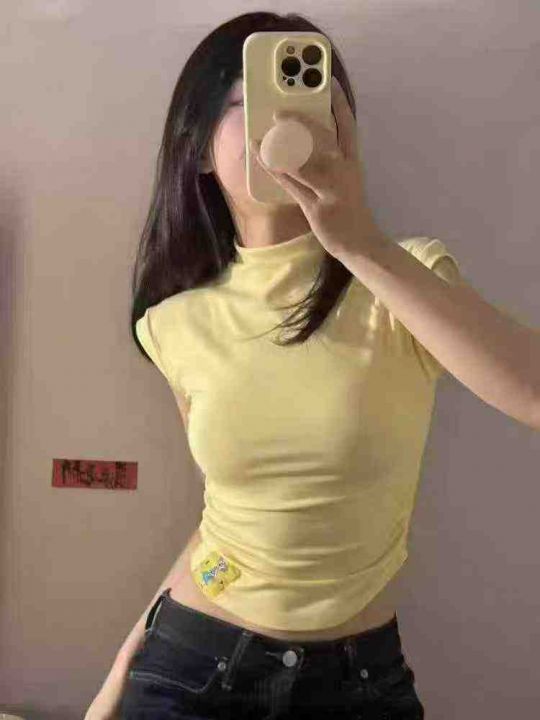 [月亮]:高领气质紧身棉质/烫钻辣妹T恤