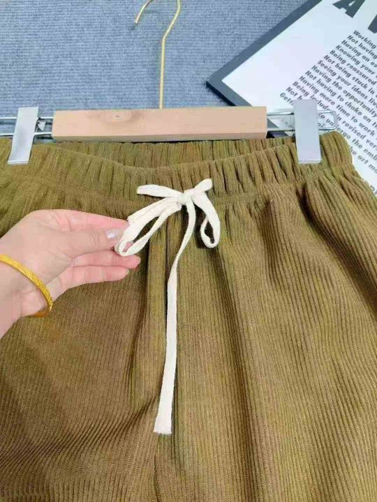 天猫店下架时尚女装灯芯绒休闲裤 280件 均码 可穿到160斤 单款单色 抽绳设计 加薄绒 款式新 货品干净 全部拉链独立包装 全清9.8。 货号:24862