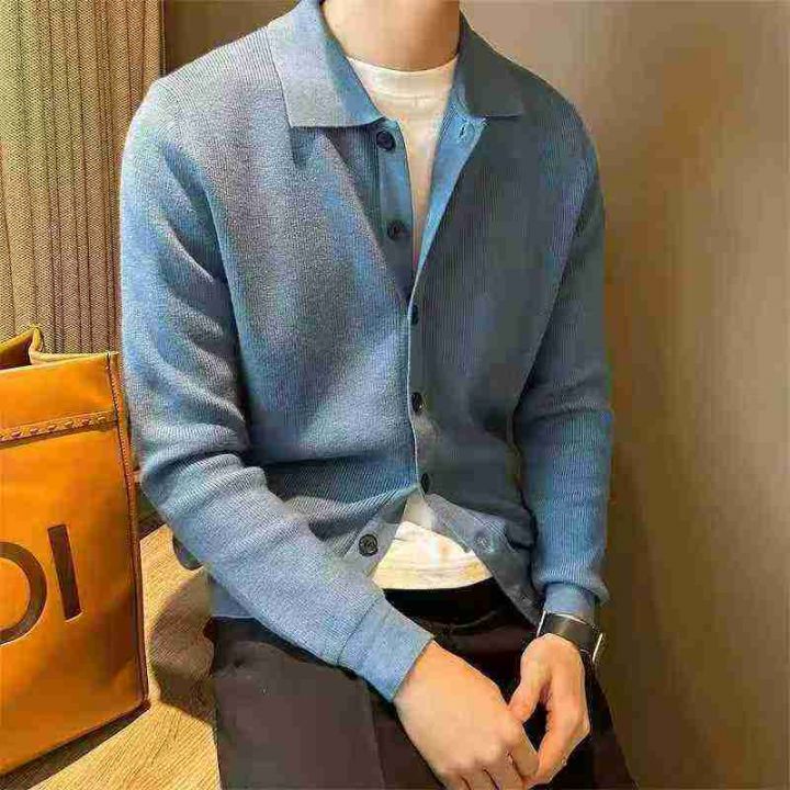 韩系翻领纯色宽松百搭开衫毛衣,[爱心]55件左右,蓝色为主,均码,穿90-150斤,[666]工厂原包装瑕疵。 货号:1303