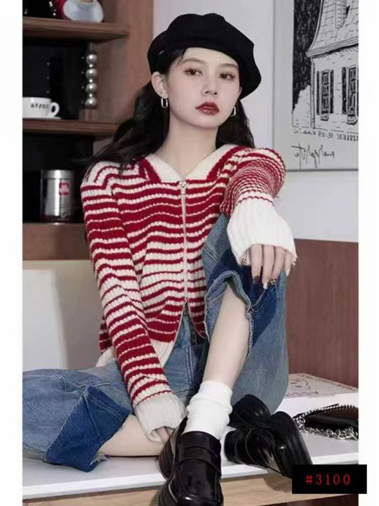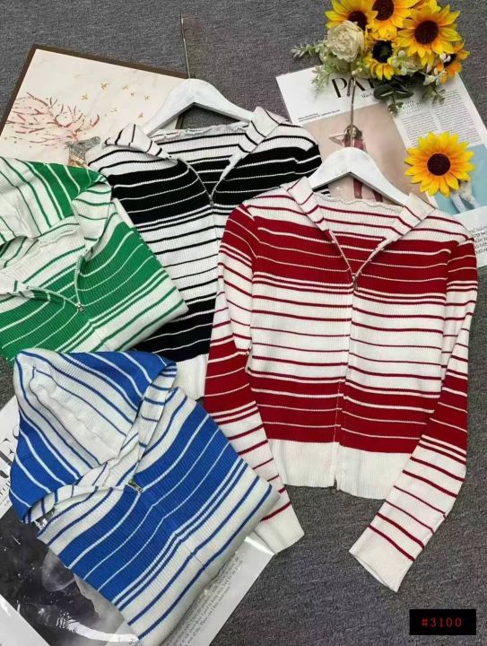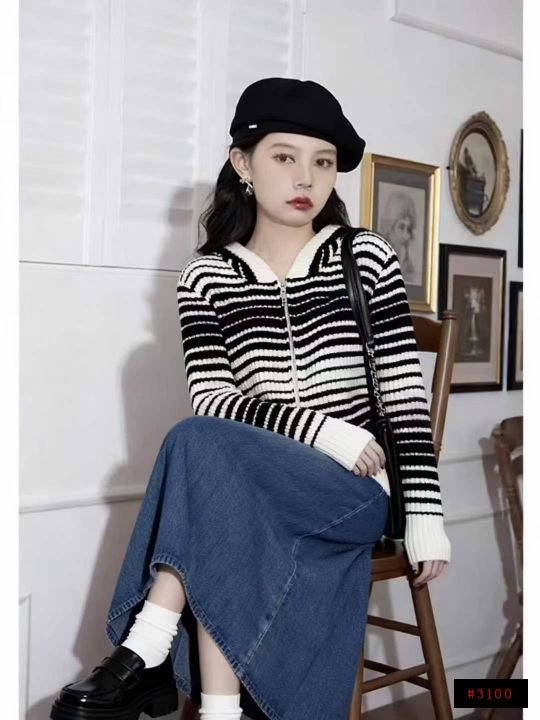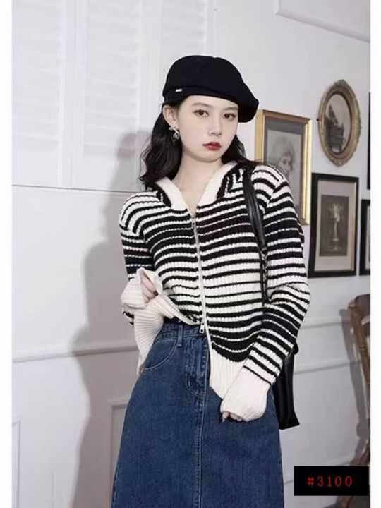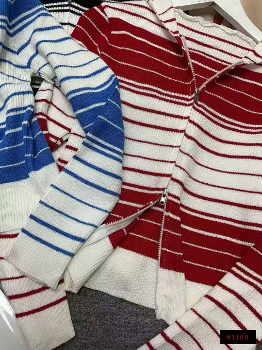 秋冬季新款弹力修身显瘦撞色条纹百搭双拉链连帽针织毛衣开衫,独立包装,均码面料软糯舒适弹力大,950件,全清7.9元超低价秒杀!分货加一!@_@