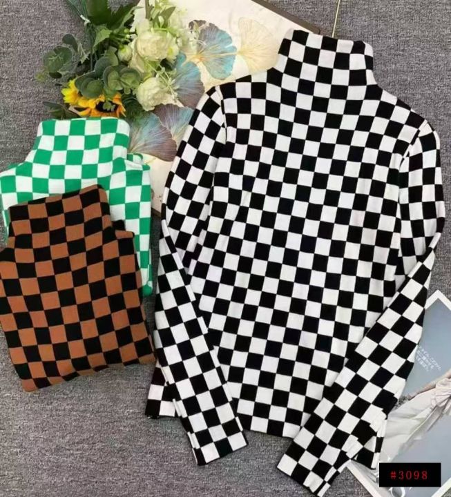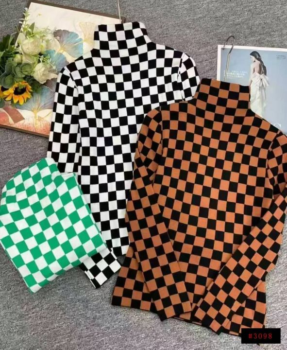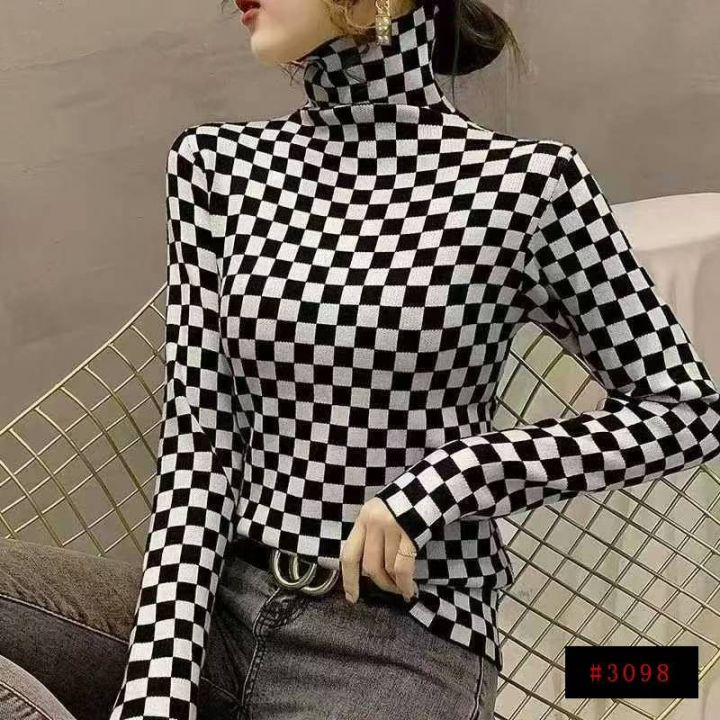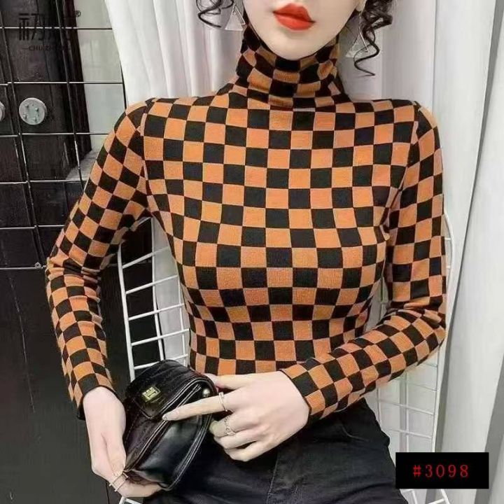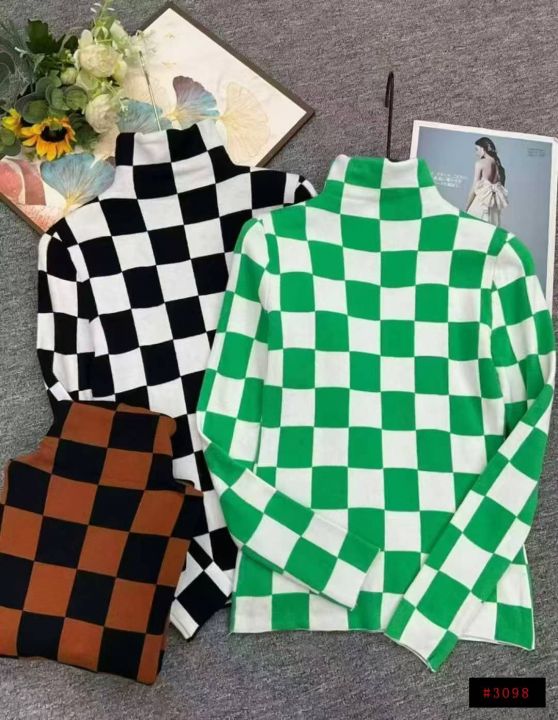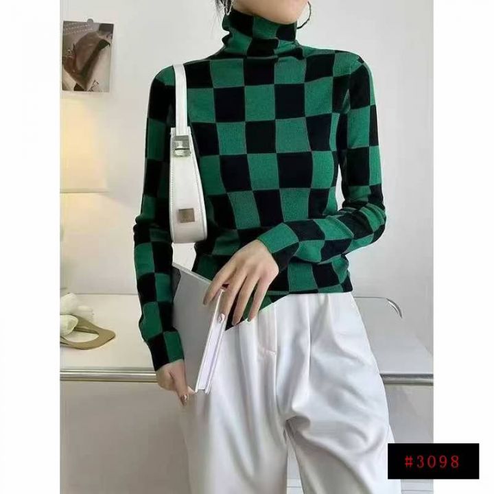 秋冬新款高品质欧洲站复古棋盘格拼色高领弹力修身显瘦包芯纱套头毛衣,独立包装,均码面料软糯舒适弹力大,1870件,腾仓库,全清5.9元亏本处理!@_@