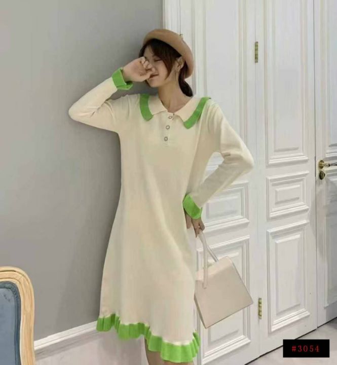 秋冬新款翻领韩版宽松学院风中长款小清新鱼尾针织包芯纱毛衣连衣裙,独立包装,均码面料软糯舒适,宽松版,290件,全清8.9元超低价秒杀!分货加一!@_@