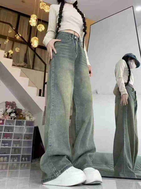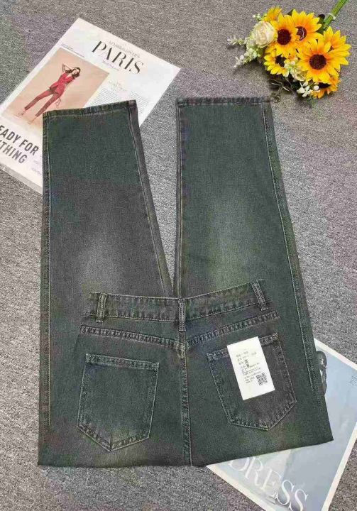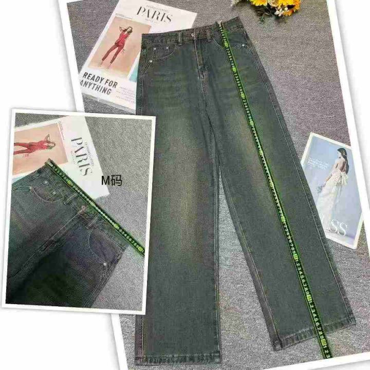 秋季新品洗水棉复古蓝9网红爆款直筒阔腿牛仔裤,独立...