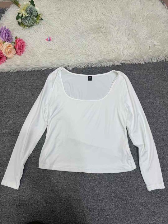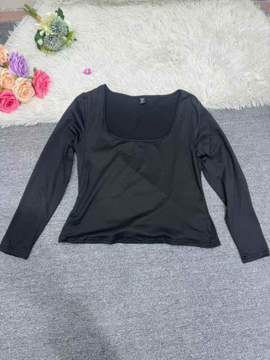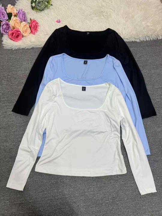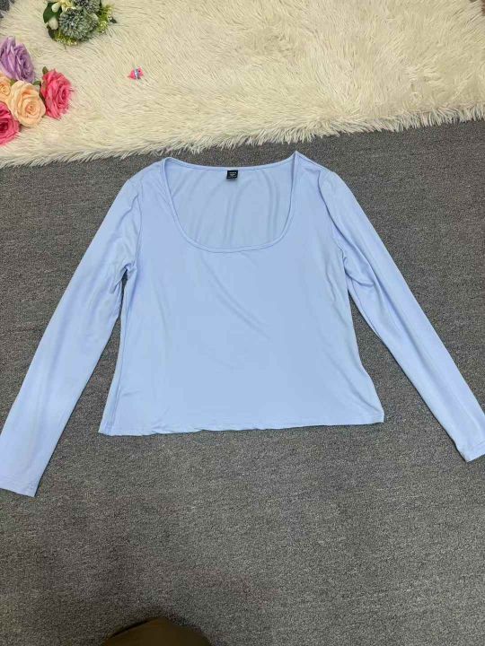 5851件,女早秋季纯色百搭U领长袖T恤上衣女弹力修身高腰显瘦打底衫,一包3件3个色包装,码数XL-4XL,全清3.8元,分货➕1