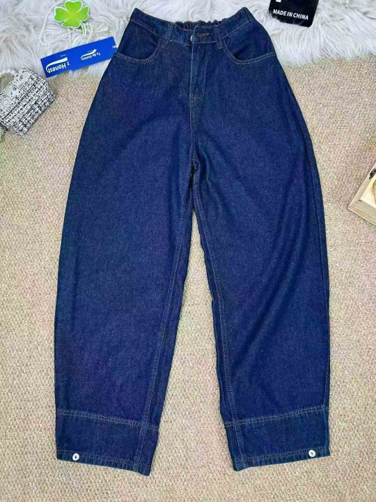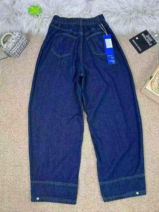 #牛仔裤批发复古水洗棉正腰 高腰弯刀牛仔阔腿宽松显瘦...