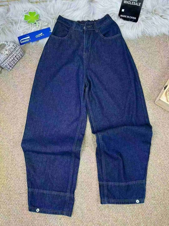 #牛仔裤批发复古水洗棉正腰 高腰弯刀牛仔阔腿宽松显瘦...