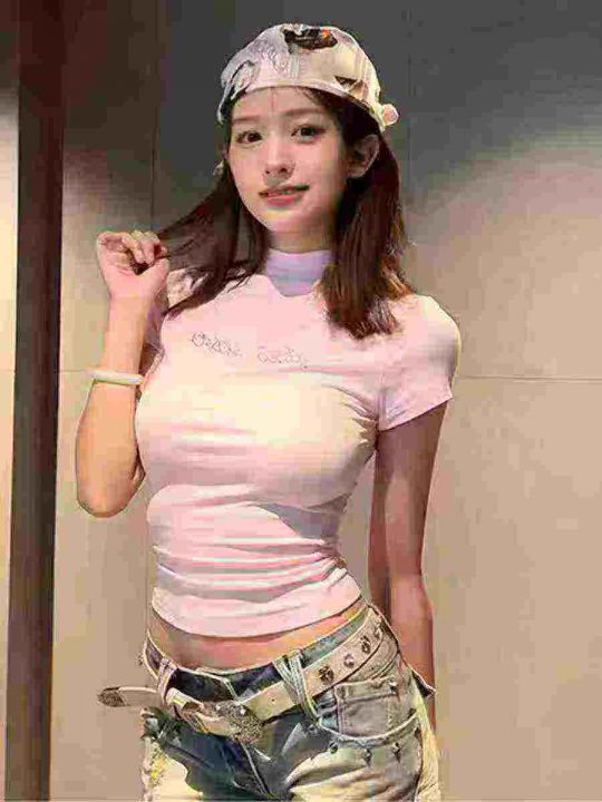 [月亮]:高领气质紧身棉质/烫钻辣妹T恤