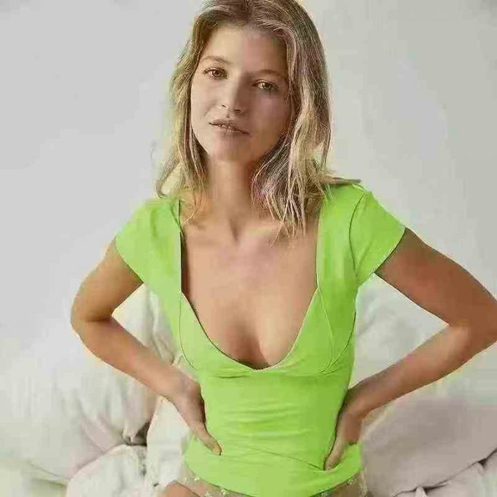 22000多件美式瑜伽辣妹风性感深V领时尚百搭短袖t恤,尺码:S~4XL,实体店...