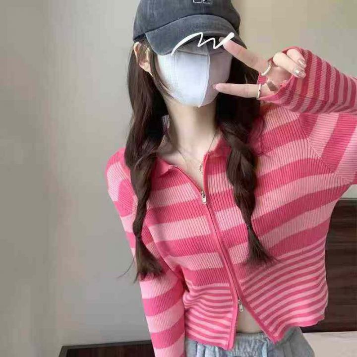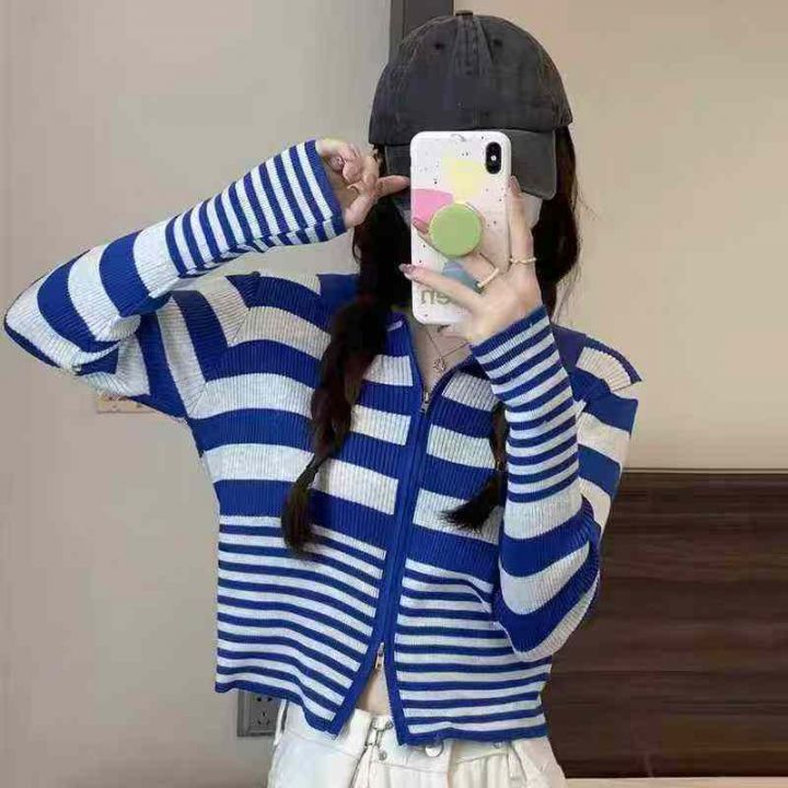 秋冬季新款弹力修身显瘦撞色条纹百搭双拉链针织毛衣开衫,独立包装,均码面料软糯舒适弹力大,1170件,全清7.9元超低价秒杀!分货加一!