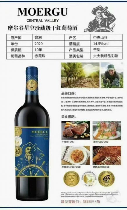 摩尔谷星空红酒,躺箱,22年9月,14.5度,中央山谷...