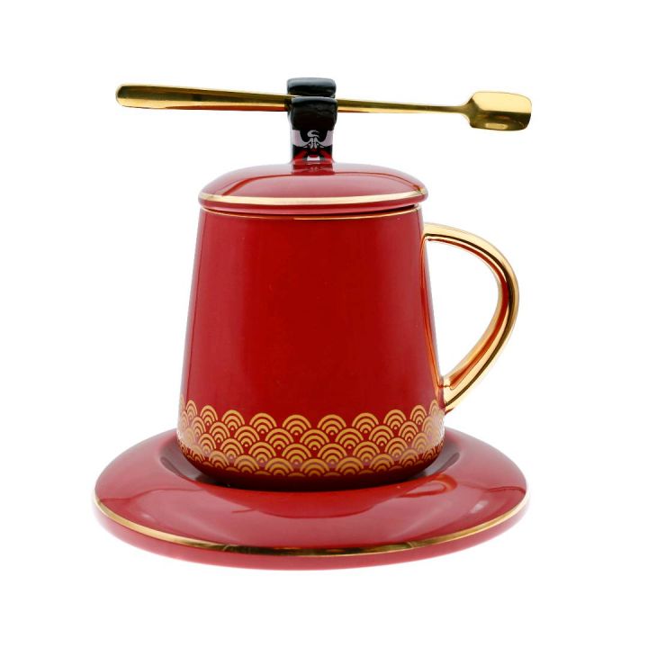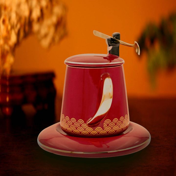 包拯杯设计来源于北宋名臣包拯的京剧造型设计,在京 剧中, “包公”演唱稳健雄浑,空谷幽深之意境,包拯 廉洁公正、立朝刚毅、不附权贵、铁面无私、英明决断、 敢于替百姓申不平,故有“包青天”及“包公”之名。 杯盖为手工 描绘上色包拯形象,设计师巧妙的将小勺 做成包拯的官帽帽翅,杯身为包拯的官服,杯托恰似腰 带,整体造型灵动生趣,大红色釉即显吉庆,又能体现 工艺精湛。