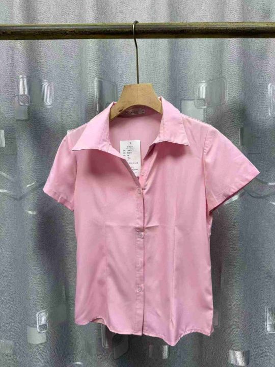 新款春夏季短袖衬衫百搭修身衬衣女正装翻领纯色韩版衬衫,独立包装,S -3 XL码,500件左右。全清4. 8块,分货加一