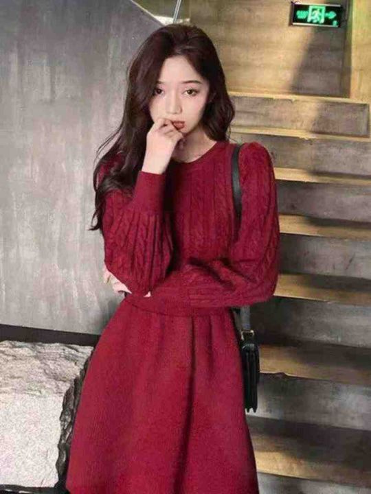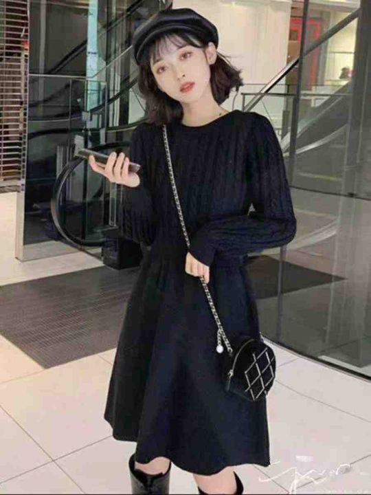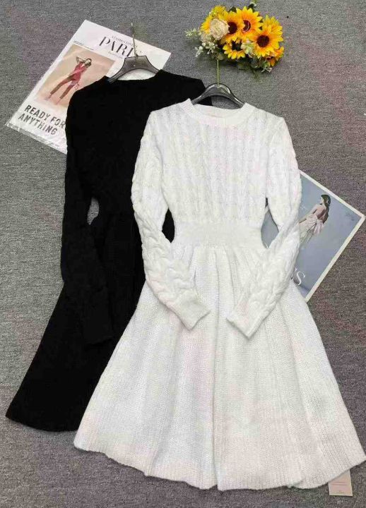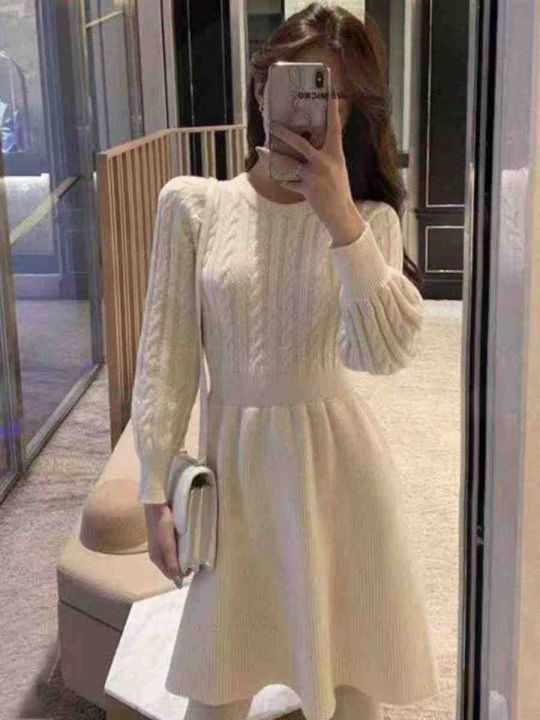 秋冬新款配大衣中长款收腰显瘦麻花加厚毛衣连衣裙,独...