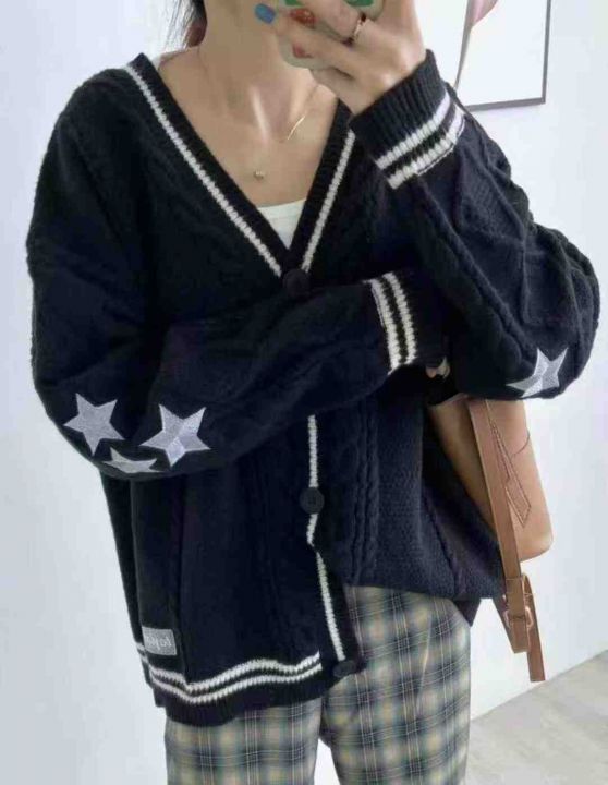 秋冬新款宽松慵懒风刺绣麻花设计款毛衣开衫,独立包装...