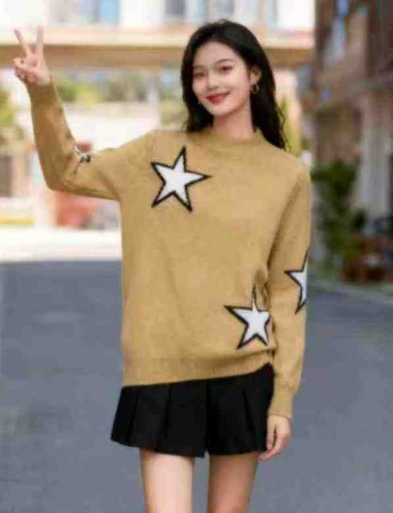 秋冬新款宽松慵懒风百搭星星提花包芯纱套头毛衣,独立...
