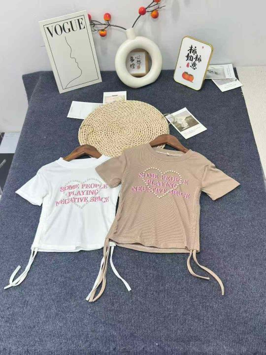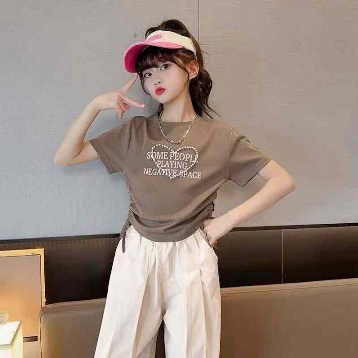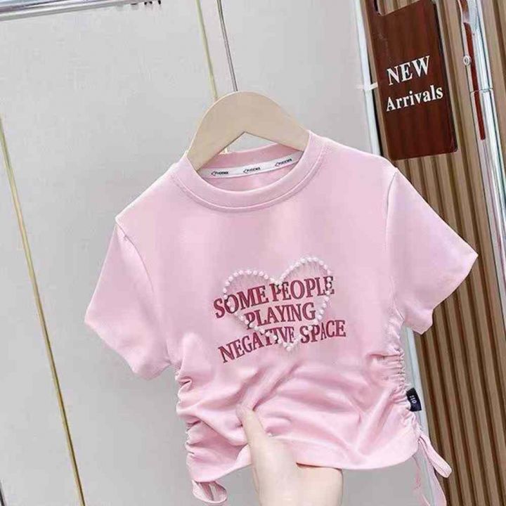 女童重工钉珠爱心短袖T恤夏装洋派7儿童设计感侧抽绳上衣,数量612件,码数90-140,独立包装,全清5.8元