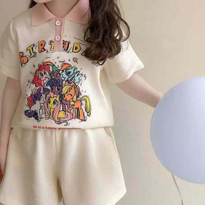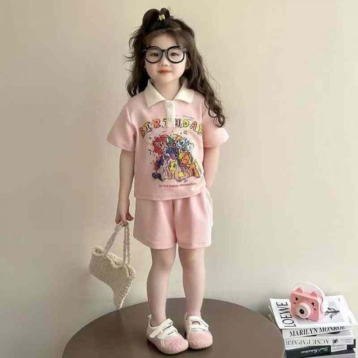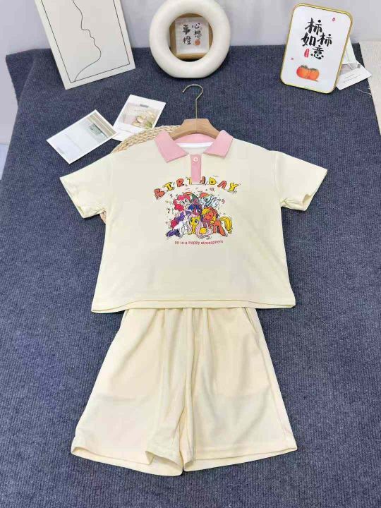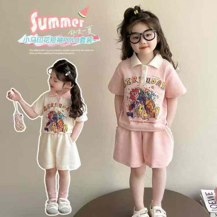 卡通polo衫短袖套装2025新款小童洋气宝宝夏装两件套,...
