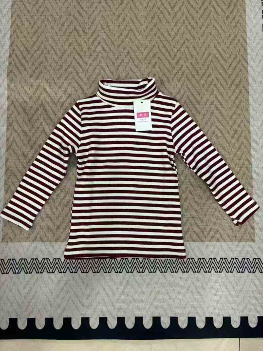 500件左右男女童半高领打底衫条纹长袖T恤秋冬款儿童装...