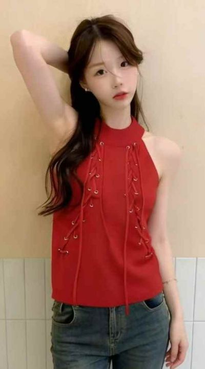 夏季新款净版设计款挂脖纯欲辣妹针织吊带背心,独立包装,均码面料柔软舒适...
