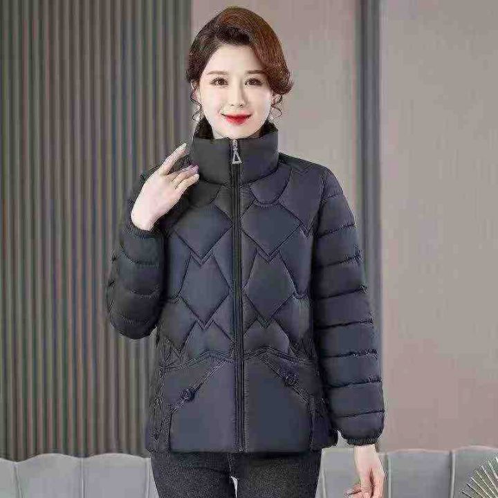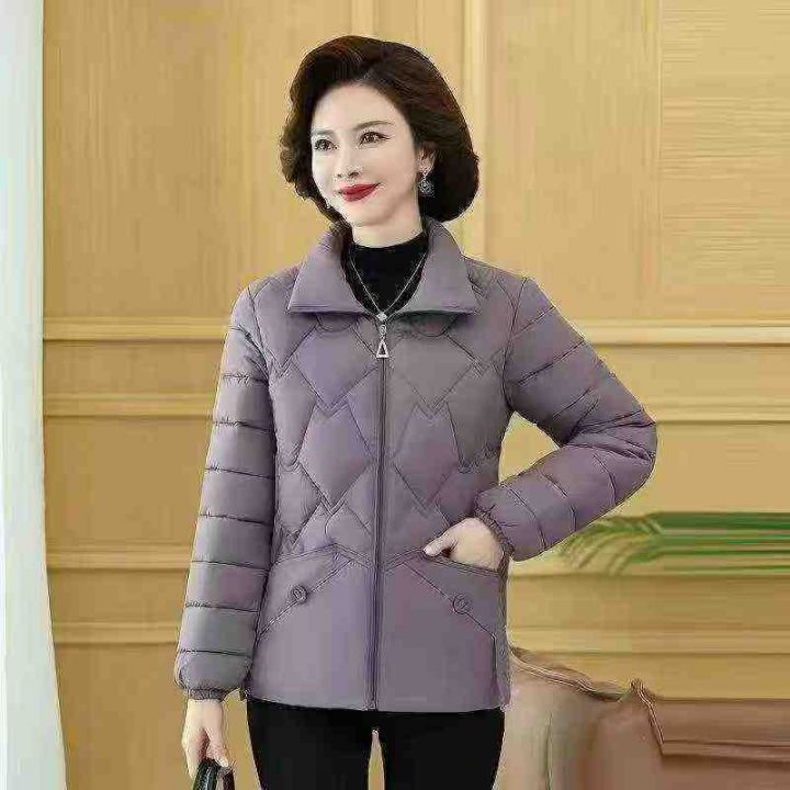 秋冬羽绒棉衣中老年妈妈装女士洋气立领时尚轻薄棉服(...