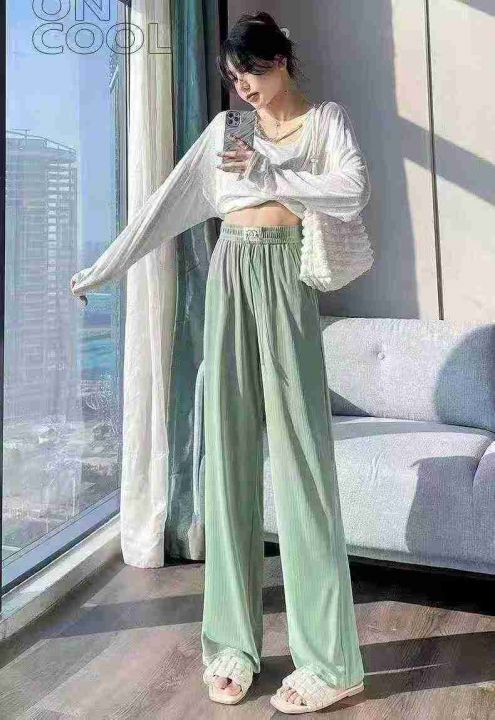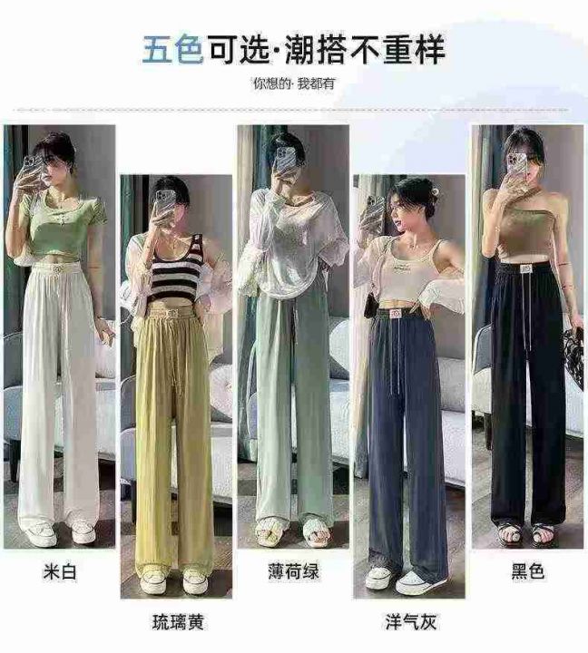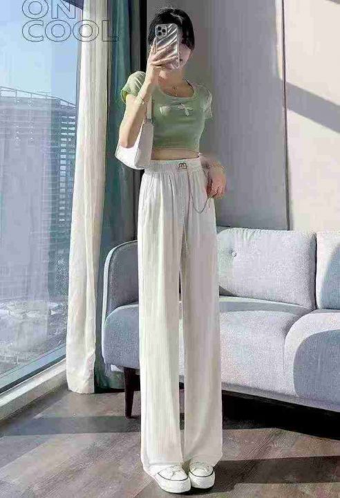 300件高腰直筒冰丝阔腿裤,裤头包边,面料垂顺有质感...