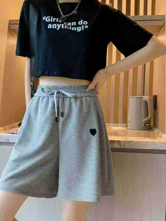 华夫格短裤女夏季宽松高腰休闲中裤外穿a字阔腿,整款...
