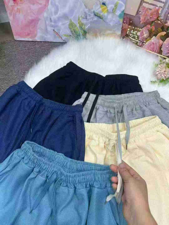 华夫格短裤女夏季宽松高腰休闲中裤外穿a字阔腿,整款多色,1到4码,独立包装,货品干净,1320件左右,5.9清,分货加1