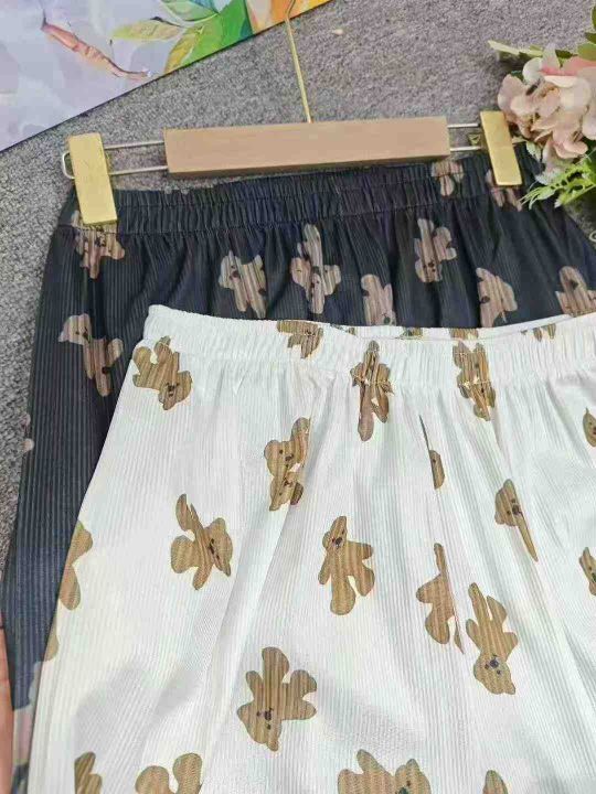 小熊印花风格百褶裤女宽松百搭垂感阔腿裤高腰直筒裤休闲裤,独立包装,整款2色,1-5码,130件左右,4.9元秒杀价!!!
