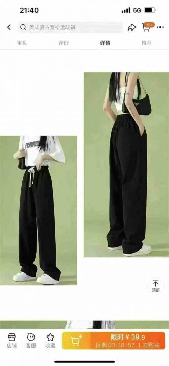 全清7.9美式复古运动裤女2025年新款显瘦阔腿宽松直筒...