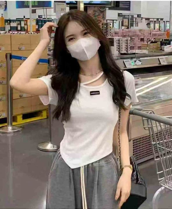 全清价5.9元不规则设计感短袖T恤女夏季新款辣妹纯欲风...