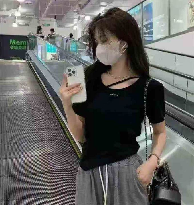 不规则设计感短袖T恤女夏季新款辣妹纯欲风修身显瘦时尚上衣,独立包装,码数1-3码,共378件,分货加1,(货号0910#28)。 货号:1323
