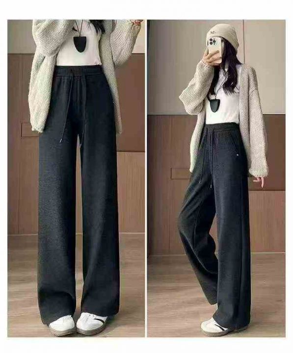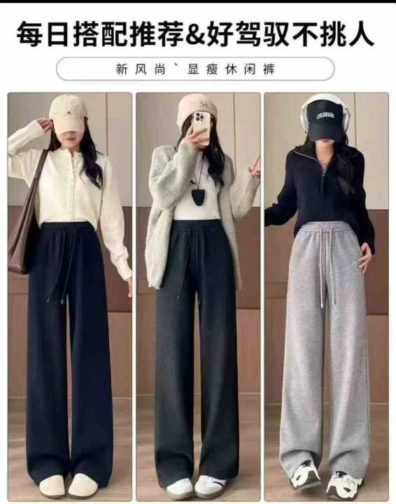捡漏款,冬季新款韩系净版加绒加厚松紧腰直筒阔腿弹力...