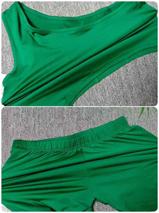 3.9清工厂回收84套外贸热卖绿色斜肩吊带短裤套装,码...