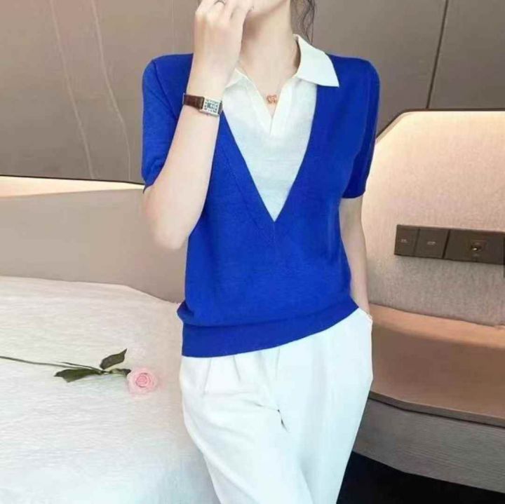 夏季新款宽松显瘦假两件冰丝针织衫,独立包装,均码面...