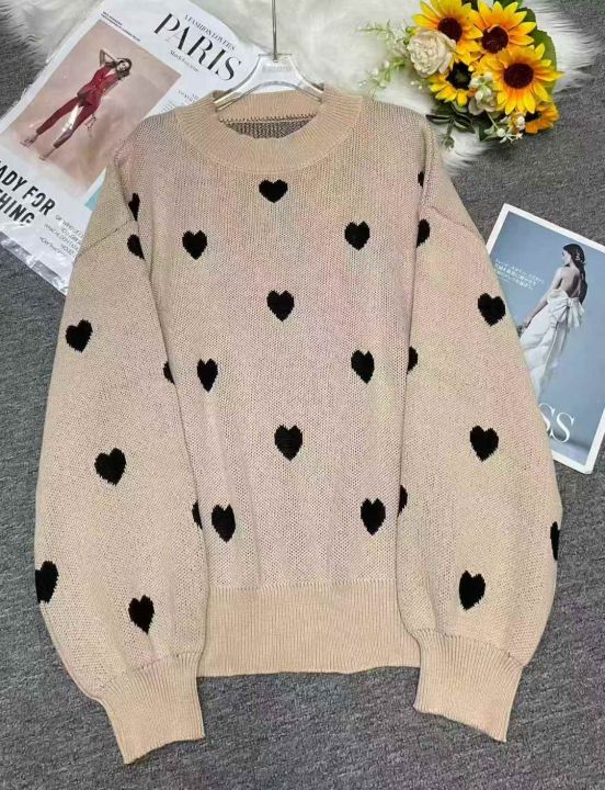 秋冬新款宽松慵懒风爱心大板提花包芯纱套头毛衣,独立包装,大版型,25件,...