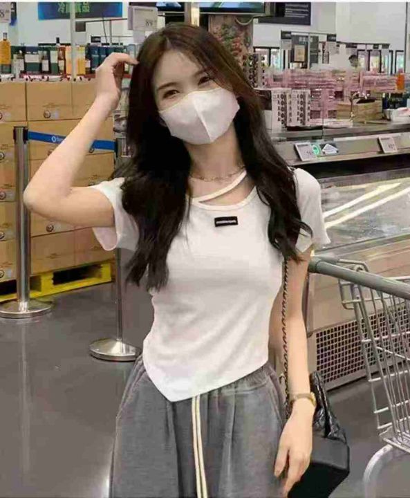 全清价5.9元不规则设计感短袖T恤女夏季新款辣妹纯欲风...