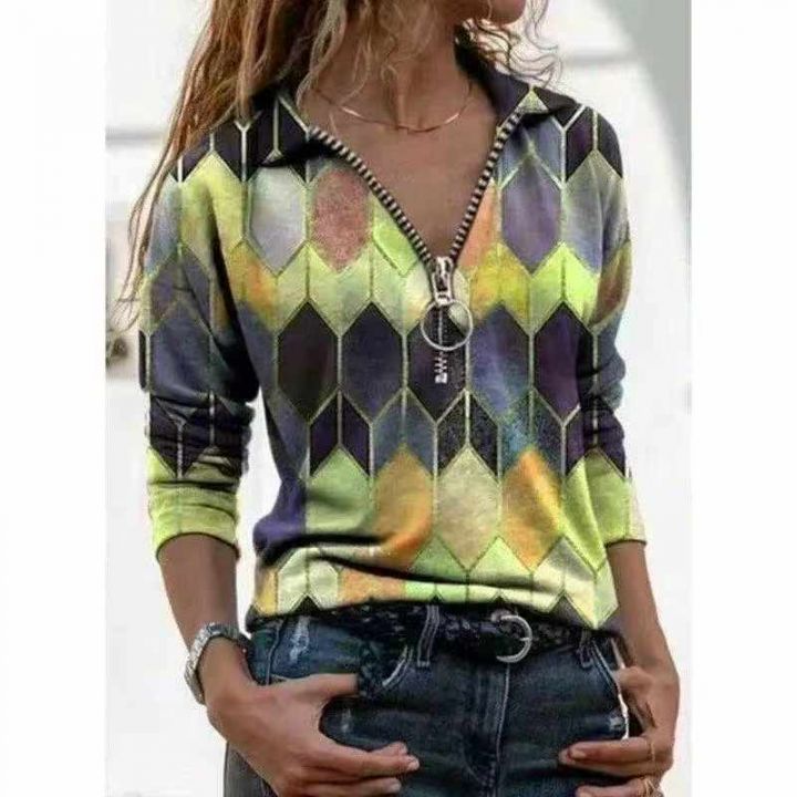 2935件外贸时尚印花撞色打底衫上衣女,尺码S~3XL,面...