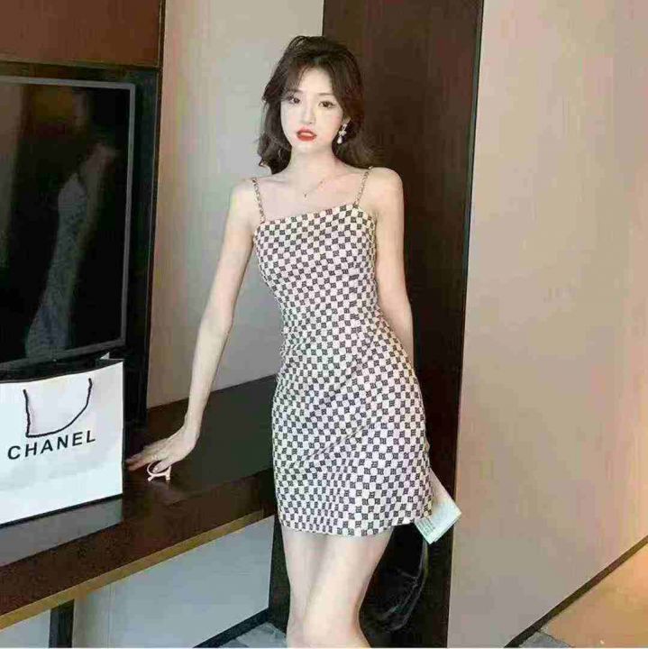 设计感链条吊带连衣裙女2025夏季新款性感气质修身显瘦格子包臀裙,271条,S-XL(1-4码,)独立包装,分货➕1(款号:0609#16)