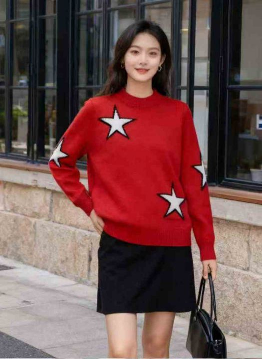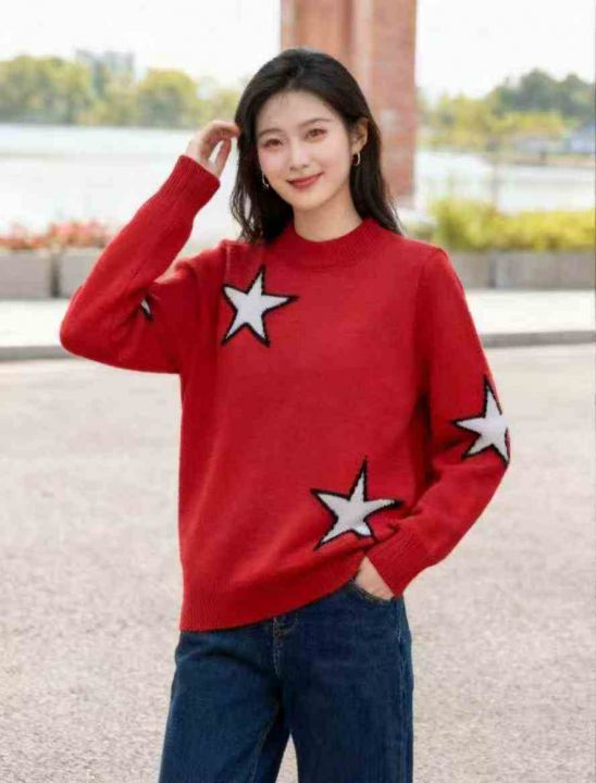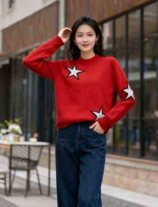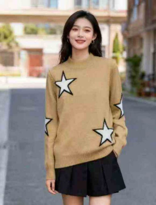 秋冬新款宽松慵懒风百搭星星提花包芯纱套头毛衣,独立...