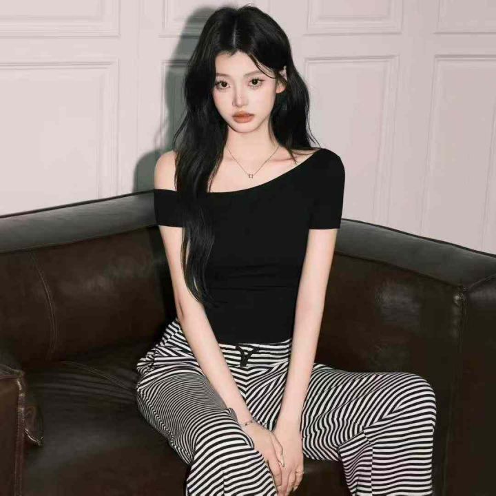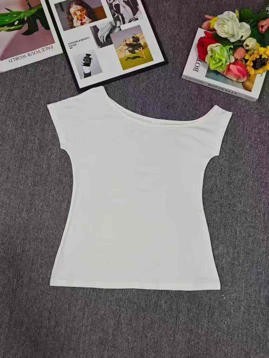2.5清电商仓回收1166件纯欲性感斜肩短袖上衣,码数S-2...