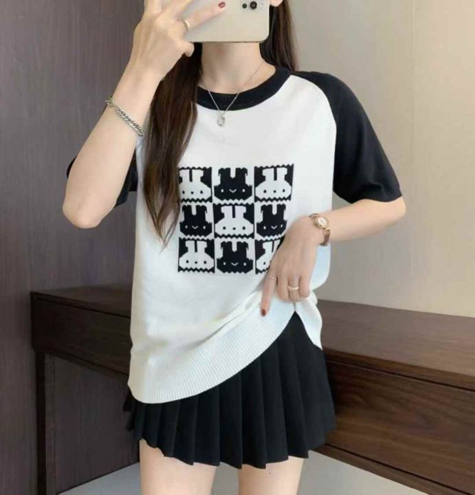 夏季新款韩系圆领撞色提花针织短袖T恤,独立包装,均码面料柔软舒适弹力大,330件,全清5.9元超低价秒杀!分货加一!