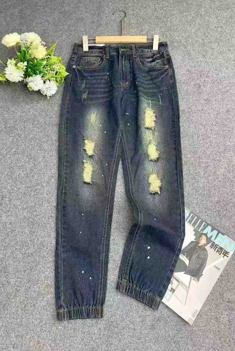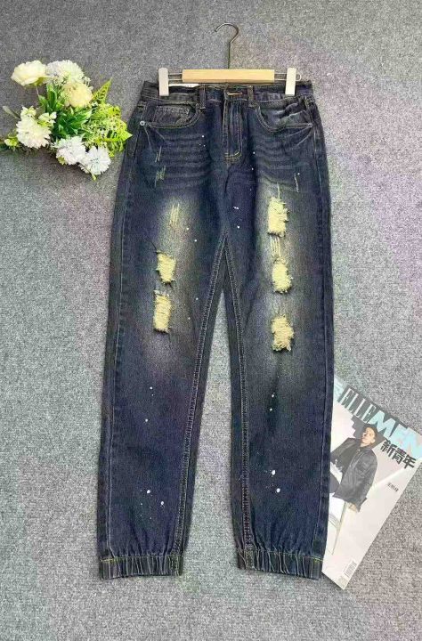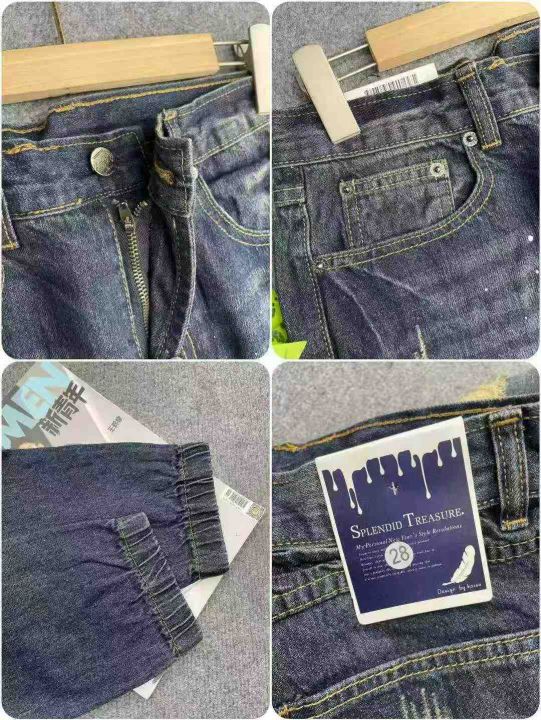65件设计感潮牌破洞泼墨修身束脚牛仔裤。面料舒适,品质可入实体。28一30码,独立包装,全清12.8