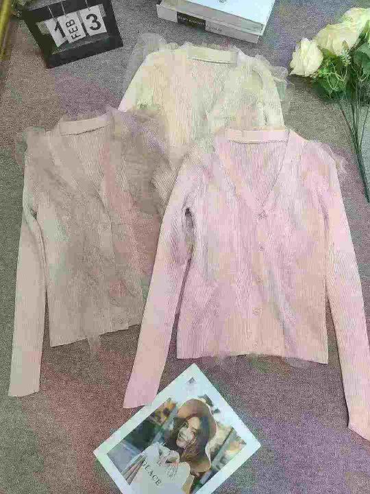 拼接网纱针织衫开衫修身显瘦网红靓妹毛衣打底小外套,独立包装,五个颜色,1850件,清9.5元,分➕5毛