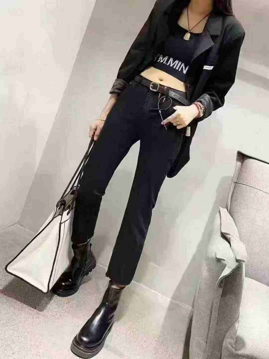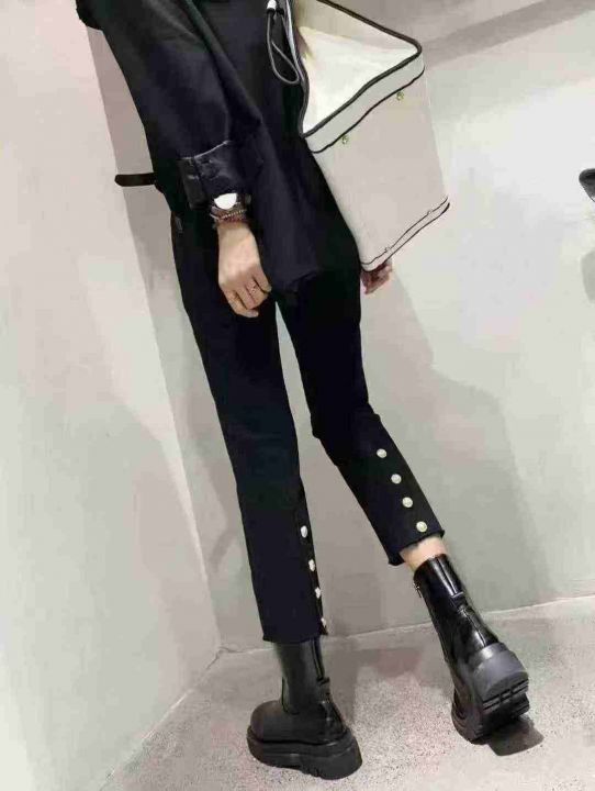 新款牛仔裤女开叉纽扣时尚弹力显瘦欧货排扣九分烟管裤潮,数量95件,码数25-30,全清7.9(不分货)