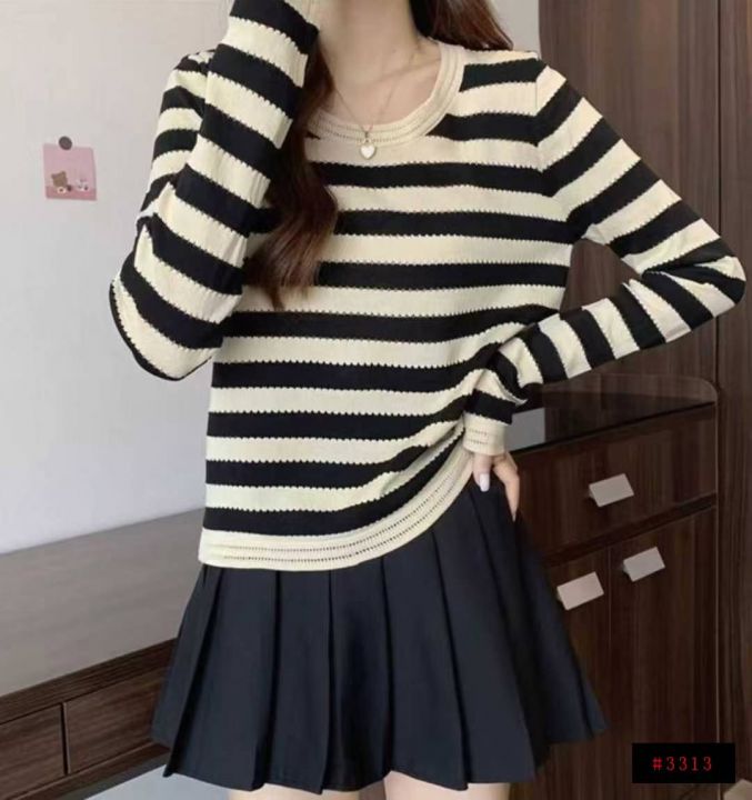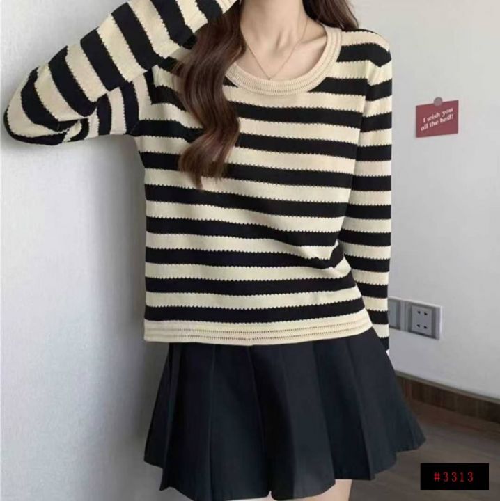 春秋款新品撞色条纹宽松正肩长袖针织衫,独立包装,均码面料柔软舒适,1020件,全清6.9元超低价秒杀!分货加一!@_@
