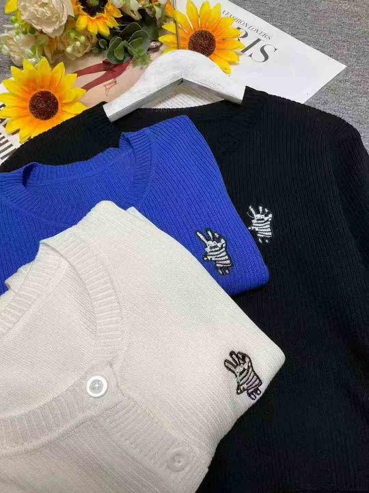 秋季新品刺绣小标韩系温柔风外搭别致高级感针织毛衣开...
