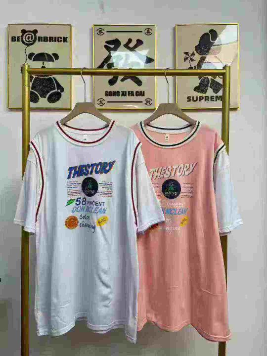 天猫在售款100件左右夏季女装运动风假两件纯棉大版休闲短袖T恤,单款两色,独立包装